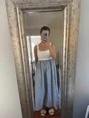 This was super comfy. It was perfectly form fitting on top and flowy on the bottom. Easy to wear out and about for the summer.