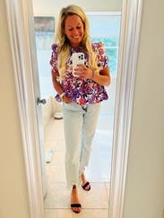 Such a cute, crisp shirt. You must iron, but it’s airy and comfortable, paired with white capris and jeans. Looked great, got lots of compliments.