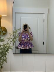 Loved the bright print and the shoulders fit very well. The peplum was huge though and looked kind of maternity-ish, not my favorite look.