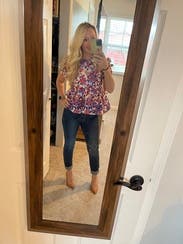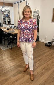 This top is so cute and was a great fit for me. It was great to pair with jeans.