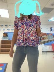 The shirt is cute, but wouldn't rent again personally. I loved that it was colorful and I think there's something feminine about a baby doll cut shirt, but the arms /back felt too small given the proportions of the body of the shirt