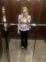 Loved this top for a work lunch and office day. The sleeves were a little tight on my arms and they don’t have elastic or anything. Super cute print and great cut with just a slight poof in the shoulder.