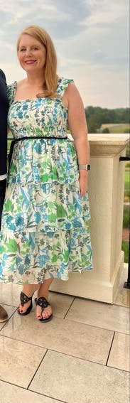 I wore this dress to my friend's outdoor summer bridal shower and it was perfect. The dress was so fun and easy to wear. It was the ideal length for a petite frame if you're looking for a longer dress. I loved the contrast of the dark belt.