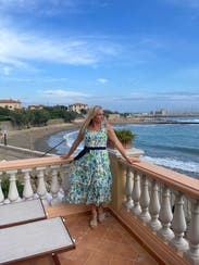 Straps a little loose so I tied them together behind my neck under my hair. Floaty fabric.