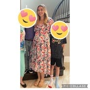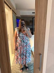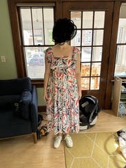 Cute dress for a baby shower. I liked that it was long in the back but it wasn't particularly flattering (sort of a baby doll style) and would probably look cute on a pregnant woman.