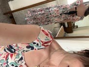 So flattering. Beautiful pattern and I loved the tie detail in the back. Wore it for my anniversary dinner. No bra needed if you have a smaller chest
