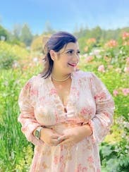 So chic and comfortable especially for women with larger busts! Loved the little peak-a-boo detail around the bust. Dress length was perfect too! Was tempted to buy but will for sure rent again!
