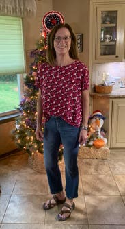 Just one of those loose, perfect fitting shirts – wore multiple times, including a work conference. Big bust friendly.