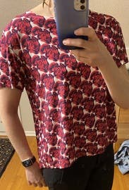 Super boxy but still flattering. Full and floaty with just enough volume. The print would make Andy Warhol proud.
