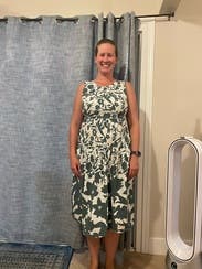 Rented this during the wild heat waves that were happening. It was an excellent dress as it was loose and flowy. I flex between sizes and I went slightly larger for airflow which was a good move for this purpose. The middle section IS a bit weird but only when you're sitting (it puffs out a bit) but didn't bother me a bit. I may end up buying this in the end!