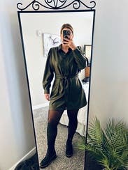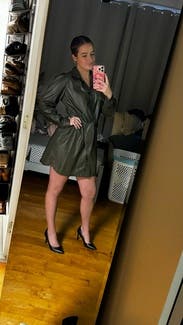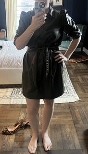Loved this dress!! The pleather makes it sexy, but it's long sleeved and not too short, so I still felt "appropriate". Wore to a concert w the fam! Got a ton of compliments. Also very comfy, the inside is soft and flexible.