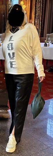 Love that these pants were full length and the added front cuts make them special. Elastic waist was very comfortable though always sweating no matter the temp when wearing pleather.