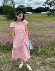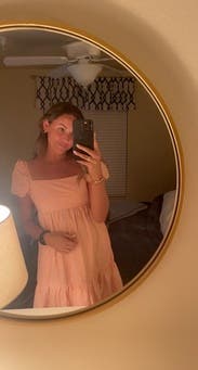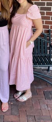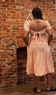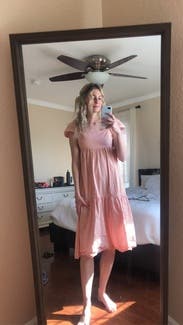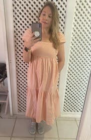 I loved this dress so much! Prefect light weight cotton material. The puff sleeve was so flattering and the tie back made it easy to adjust to my smaller chest. 10/10!