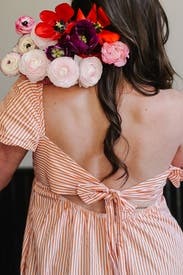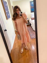 I loved this dress and the tie back! I just wore nipple petals and didn't need to wear a bra with it. The sleeves were a little big and kept sliding down, but otherwise it was perfect. The orange and white stripes are so cute!