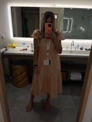 this dress is so comfortable, cute, and flattering! Perfect for a day exploring the coast. I usually am a size 4, but got a size 2 which worked just fine since I have a small chest and the dress is meant to be airy. One note on the sleeves— they do fall down quite a bit, so I recommend fashion tape.