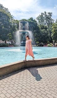 The material isn't great if you're traveling without a steamer but luckily, the pattern drowns out the wrinkles. Like most Peter Som Collective dresses, this one also has deep pockets that work well to put a wallet and/or cellphone. The pockets shift with the weight of the items so I never had to worry about my phone/wallet falling out of the pocket. I was really worried that I'd look juvenile or pregnant in this dress but I felt it was flattering.