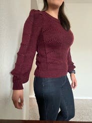 This looks like a basic sweater at first glance, but then you notice the subtle details such as puff shoulder and small open stitches in select spots. Really easy to wear.