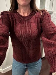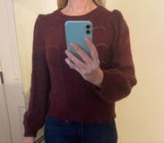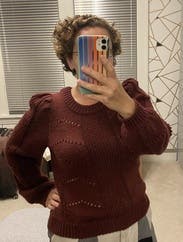 Love this sweater!! The little shimmer in the threading, the little puff sleeve and the design made this so much cuter in person! Wore it several times during my rental: mall, church and work. Very versatile!