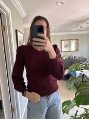 Good everyday fall sweater. Not too itchy, cute princess sleeve details. Won’t be your favorite piece, but it’s a good basic.