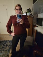 This is a cute sparkly sweater. Would rent again for the holidays. I love the puffed sleeves.