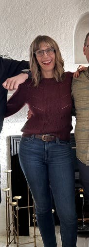 Super easy sweater with a tiny bit of bling to elevate your look with jeans or something dressier. Great around the holidays. Works well for bustier figures.