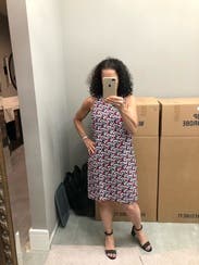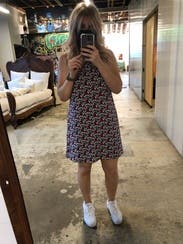 I wore this dress twice - once with a wedge sandal and then the second time with tennis shoes and a denim jacket. I really like the fit of this dress and the fact that it has pockets is a bonus. The pattern is a little bold, which makes it a great rental. As in, I wouldn't want to wear it more than once or twice.
