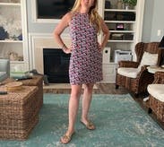 Really enjoying this fun dress! Fits really nicely, though it may be too short for some taller women. I am 5'10 and am not sure I would wear it to work, but will be great for a party or weekend.