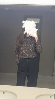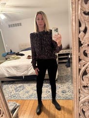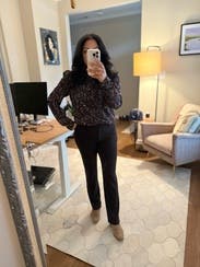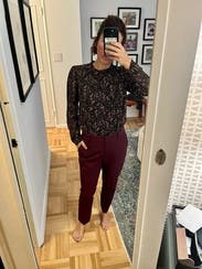 Great top. Works with lots of other colors and pant styles. Not sure if it was just me, but I did find the seam in the poofy shoulders to be a bit scratchy. Didn’t stop me from wearing it multiple times.