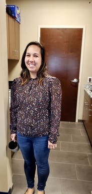 This was a nice fall top for work. Comfortable but professional. I was a bit surprised because it has shoulder pads, but they're not too extreme.