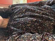 This blouse has a really pretty print of flowers on a black background. It is sheer, but is lined on the bodice. I found the sleeves to be too long. They had buttons at the wrist, but they didn't do anything to help. The fabric is very light, so the sleeves would just slide back down if I rolled them up or pushed up past my elbow. Overall a pretty blouse, but annoying.