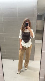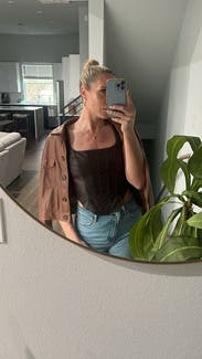 This top is amazing. Super flattering and so comfortable. I was worried I would be hot wearing it to a concert but it was still breathable and got sooo many compliments. If I had more places to wear a leather corset top I would buy it in a minute! One small thing - it’s easier to zip up with help but it can be done by yourself.