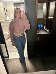 /super cute with high waisted bell/flare jeans, received tons of compliments