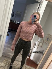 Ignore what I have on with this, I tried on real quick after a workout. I wore this with high waited jeans and it was a great sweater for cold weather.