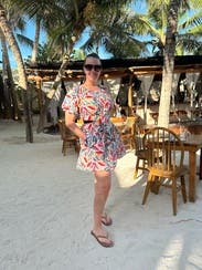 I really loved this. I wore it for a work meeting while in Mexico and it definitely fit with a beachy vibe. Loved the puffy shoulder. It’s pretty short, and it also has cut outs in the back, and a bit complicated to get it on at first. Probably could have went a size up.