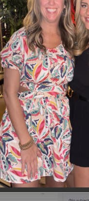 Obsessed with this dress and the colors and style! It is a big snug around the waist!