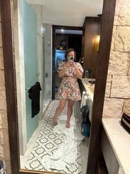 This was so flattering. The cut outs didn’t cut into me awkwardly. I got several compliments. I’ll rent again this summer for sure.