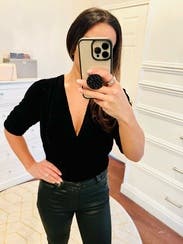 Such a cute top for a date night w distressed jeans and heels. Loved it for an elevated party look