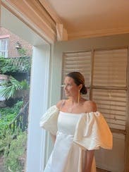 I’m yet another bride here to say I got a million compliments on this piece! It felt so classy and elevated for a Bridal Shower Tea Party with all of my mom’s friends who are near and dear to me. I would absolutely rent again, it was maybe only SLIGHTLY large on me, but I have a small chest, and everything else fit great so take that into consideration. I usually go size 6, and 4 worked just fine!