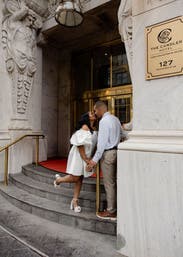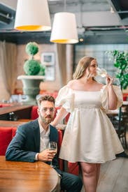 Wore this for my engagement photos and it was such a perfect fit for our photoshoot vibe! Short dresses with lots of structure are usually out of my comfort zone but I took a chance with this one of a kind piece and it payed off!!