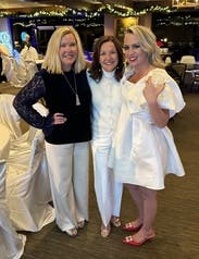 Winter White party, and it was cold out! Styled with a pom beanie, scarf and leg warmers, this fabulously puffy dress rocked!