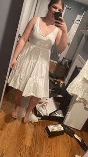 Loved the lightweight material for these hot summer days. The fit on top elevated this everyday look and the tie-bows on the shoulders made the dress customizable to you! Overall, great rent!