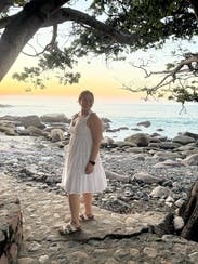 Absolutely love this dress! Wore on a lunch cruise. Very comfortable and can be dressed up or down