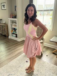Wore this on last day / travel day of vacation. Perfect day time dress—comfy, stretchy, pockets, and easy length. I would say this runs big as I’m usually a medium / 6 and got the small / 4 based on other reviews for fit. This allowed for no bra and easy comfort. Felt supported and didn’t have to fuss around with low back. Would wear this at home for a casual afternoon roaming around, errands and lunch type activities.