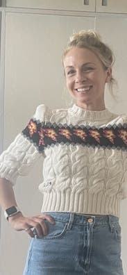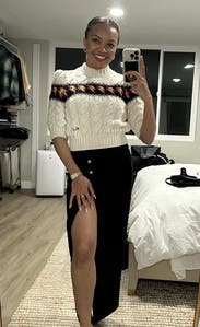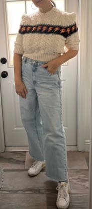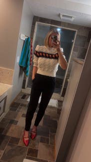 Loved this sweater! Wore for my bday dinner and Thanksgiving. Such a fun take on a faire isle sweater. Also loved the shorter sleeves and cut and puff in the sleeves. Would be super fun with black leather pants for a holiday party. Rent and enjoy!
