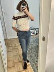 Loved this sweater with high waisted jeans and sneakers! I would buy it!