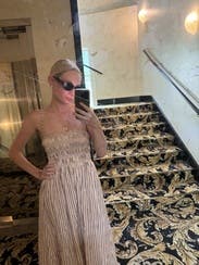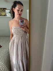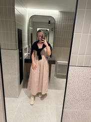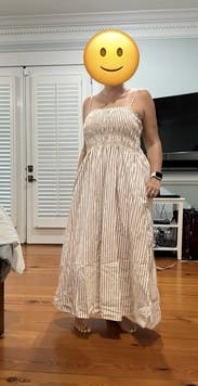 I could wear dresses like this all summer long - very comfortable and easy to wear for a daytime museum visit and lunch. Fit great . Mot my usual color palette but a nice change for me. Sorry i didn’t get a photo!