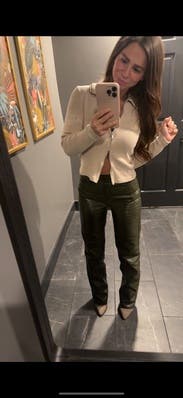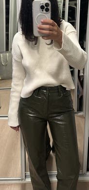 I was so worried the leather/latex pants look was going to be out this season but it is still here in full force and these pants are an absolute must this fall/winter. A little loose in the waist, but I find that often with un-tailored pants that fit my large 🍑 and nothing a belt can’t fix. 10/10