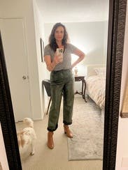 Versatile, wearable, flattering dark olive green pant for curvy girls