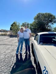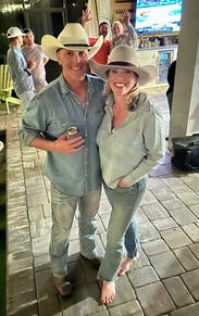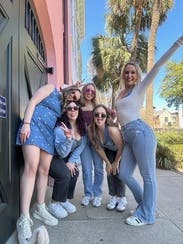 I actually rented a pair of the same brand jeans last year and bought them! These were similar but had the slits in the legs for more interest. I probably needed to rent a size smaller because they did stretch out a little after wearing them all day. Very comfortable but a little long for my 5'4" height: worked perfectly with a pair of low cowboy boots that had a little bit of a heel. Wore with sneakers, but they were dragging on ground a bit, as seen in this photo.