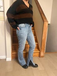 Pistola is my new go to for denim that is comfortable enough for every day and has a style element (this pair is the slit hem) that can elevate the jeans for date night
